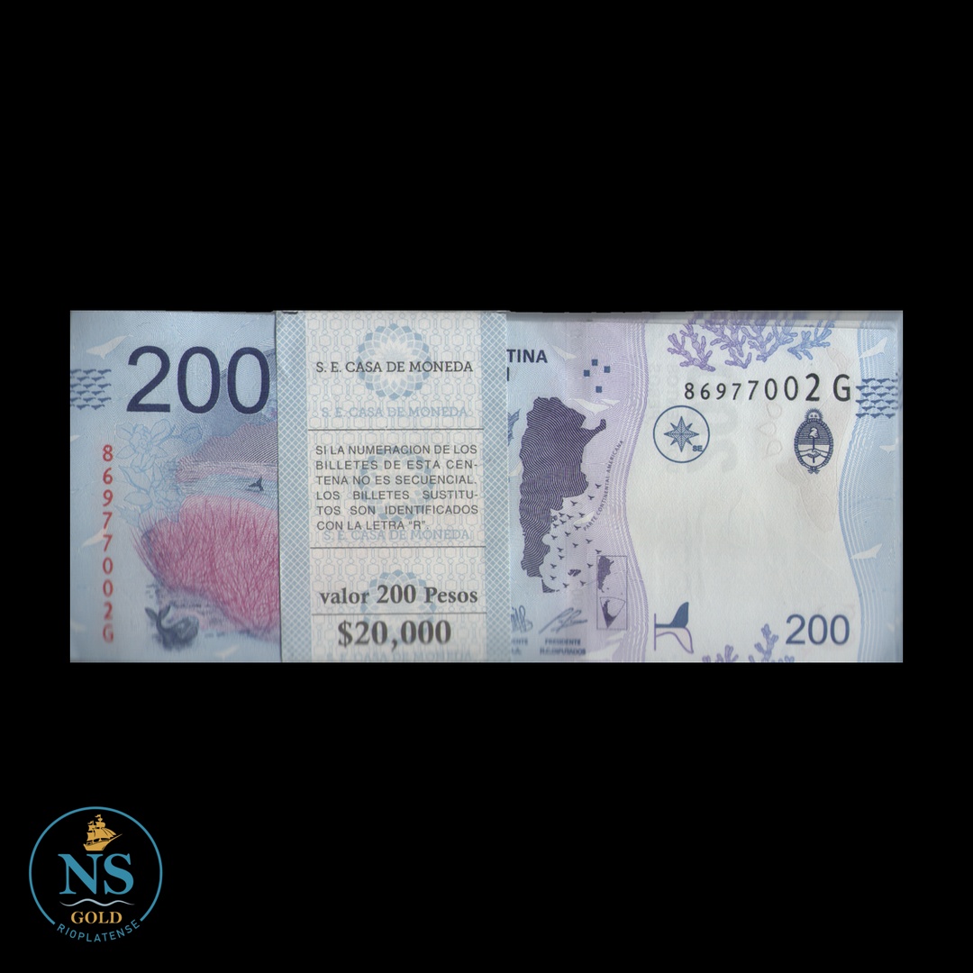 Argentina 200 PESOS COL#829a BATT-MAD#A200-13 PESCE-MASSA FAJO DE 100 BILLETES UNC